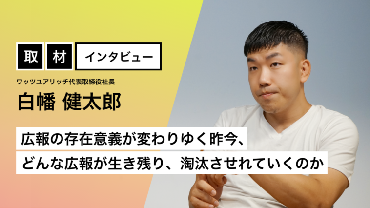 PR会社から独立し、今は株式会社ワッツユアリッチのCEOとして活動する白幡健太郎さん。企業のブランデイングや、PR観点に基づく商品開発の支援などをおこなっています。